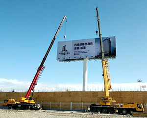 3、根據安裝廣告牌的大小選擇合適的吊車和吊繩、卡環、纜風繩等。