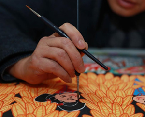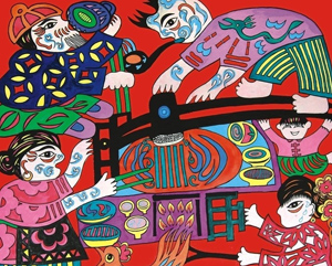 大方縣是文化部命名的首批“中國農民畫之鄉”,大方農民畫取材于生活,創作于民間。農民畫作者運用“以情造型、以情用色”的大膽夸張的表現手法,將民間剪紙、挑花、蠟染、刺繡等融合在繪畫中,用水粉顏料在宣紙上作畫,形成濃郁的民族民間風格和淳樸粗獷的畫風。